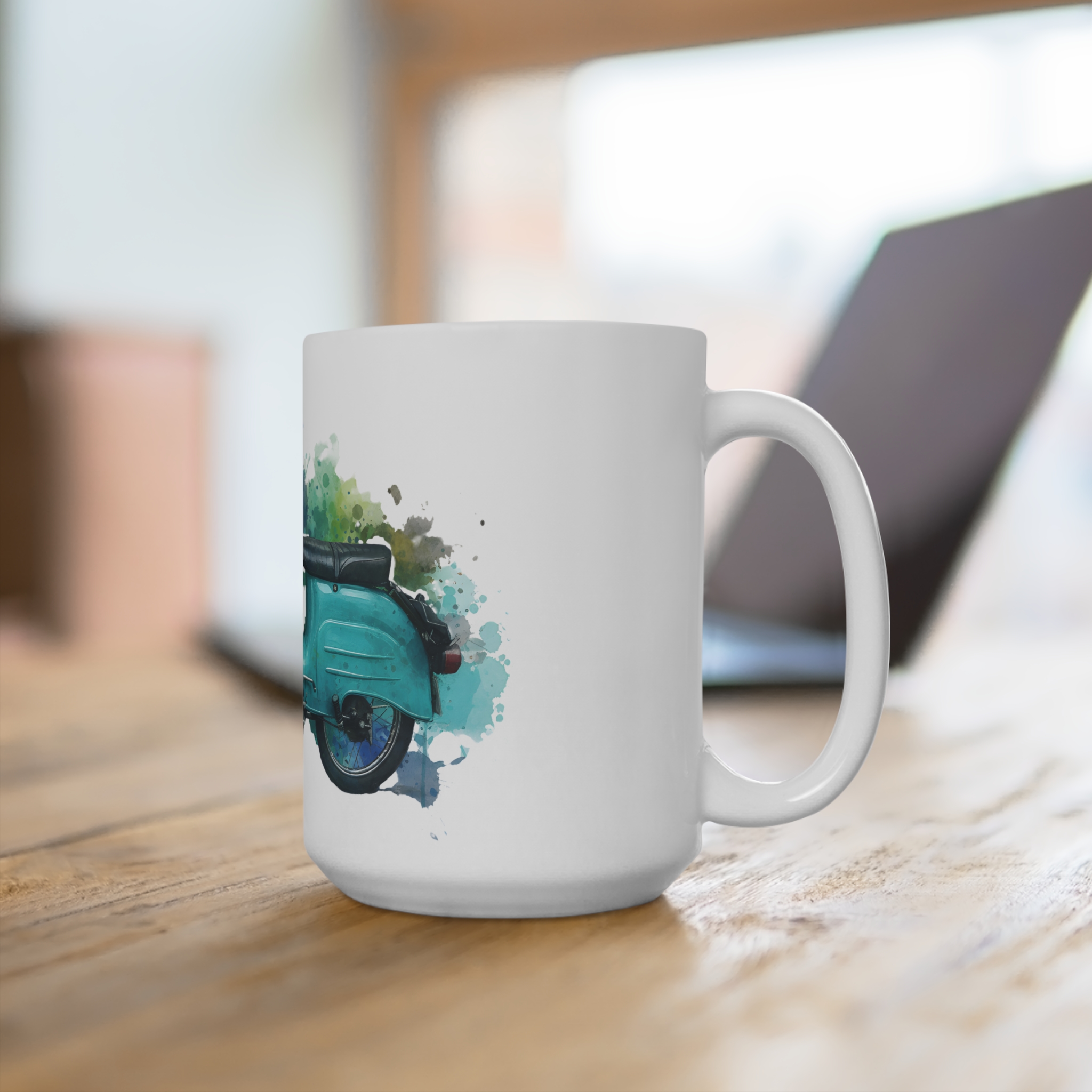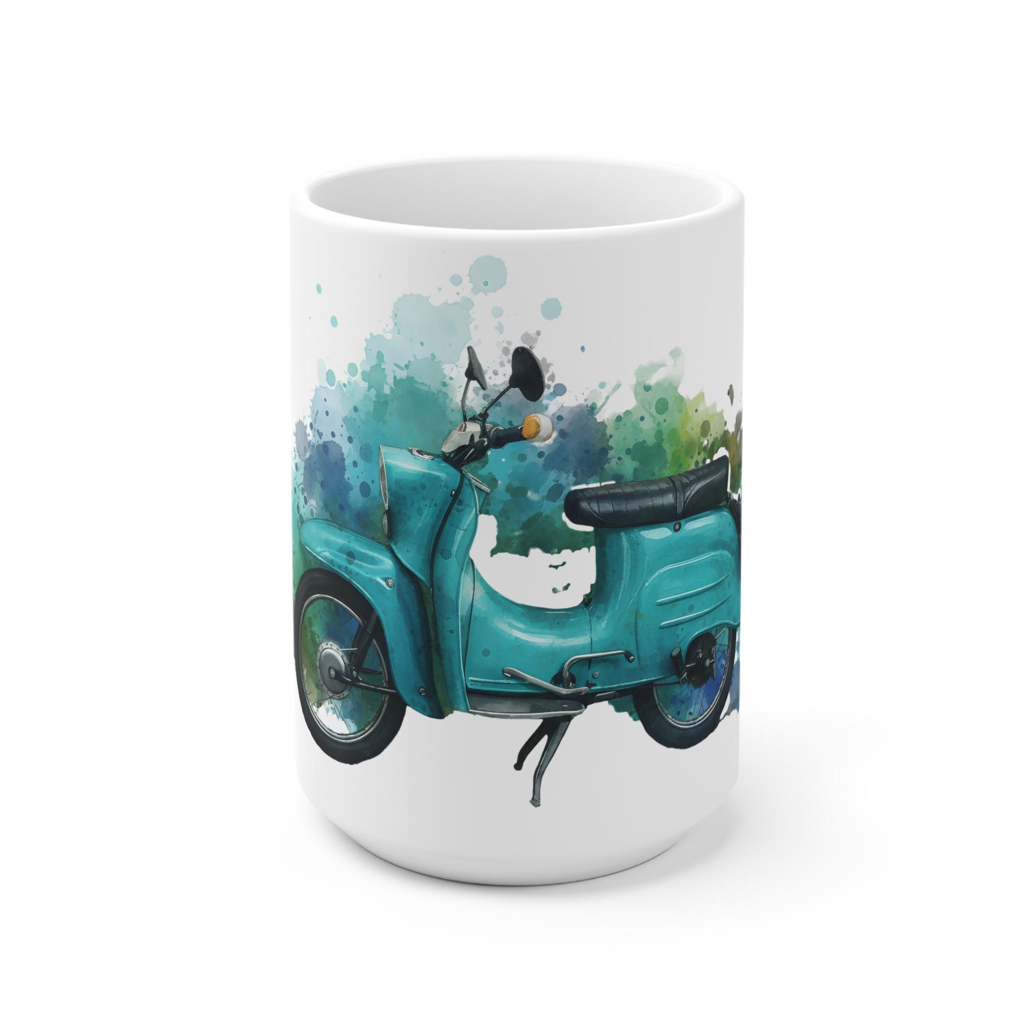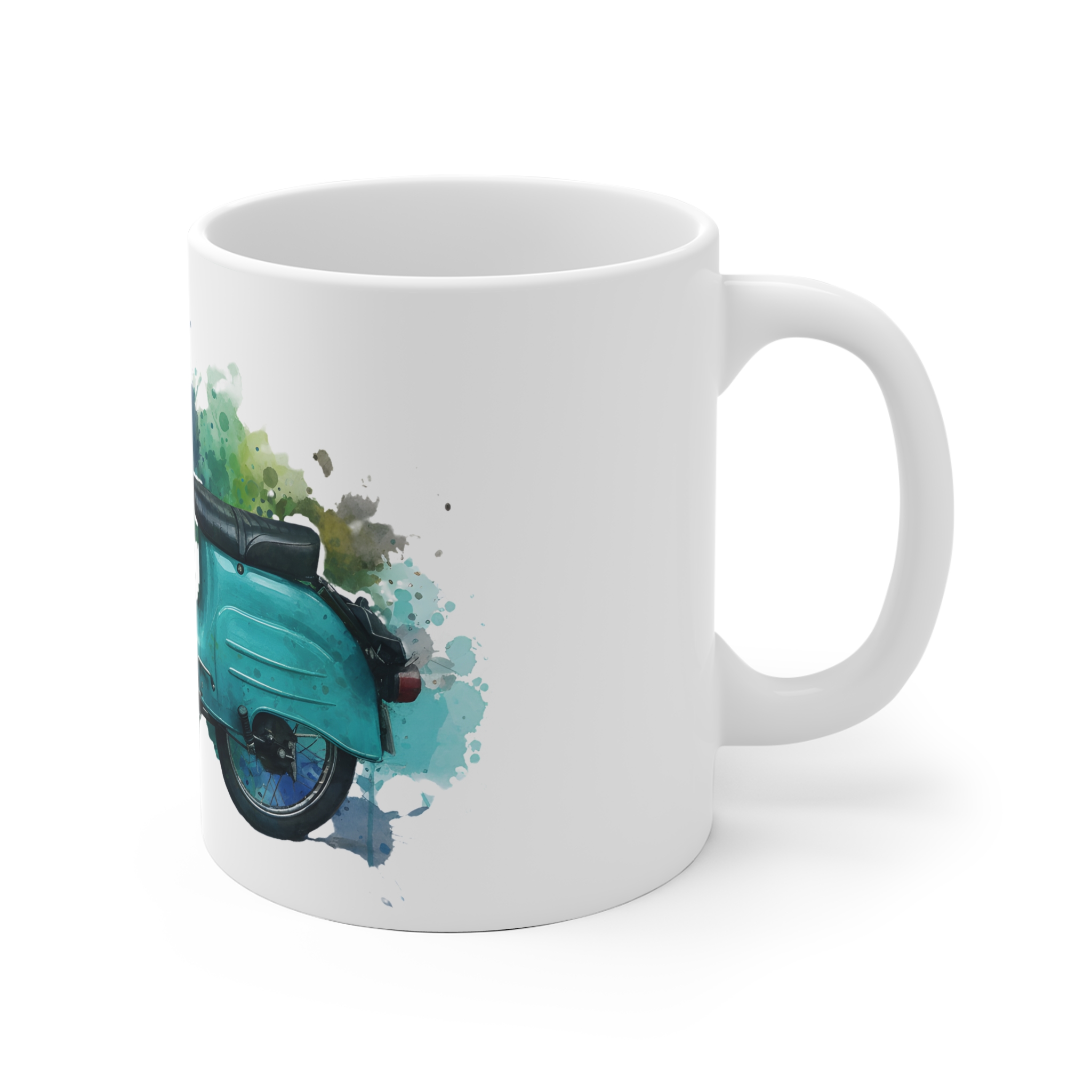 Schwalbe Moped Retro-Tasse – Nostalgie-Design für Ostalgie-Fans, Aquarell Illustration, hochwertige Keramik, 11 oz/15 oz