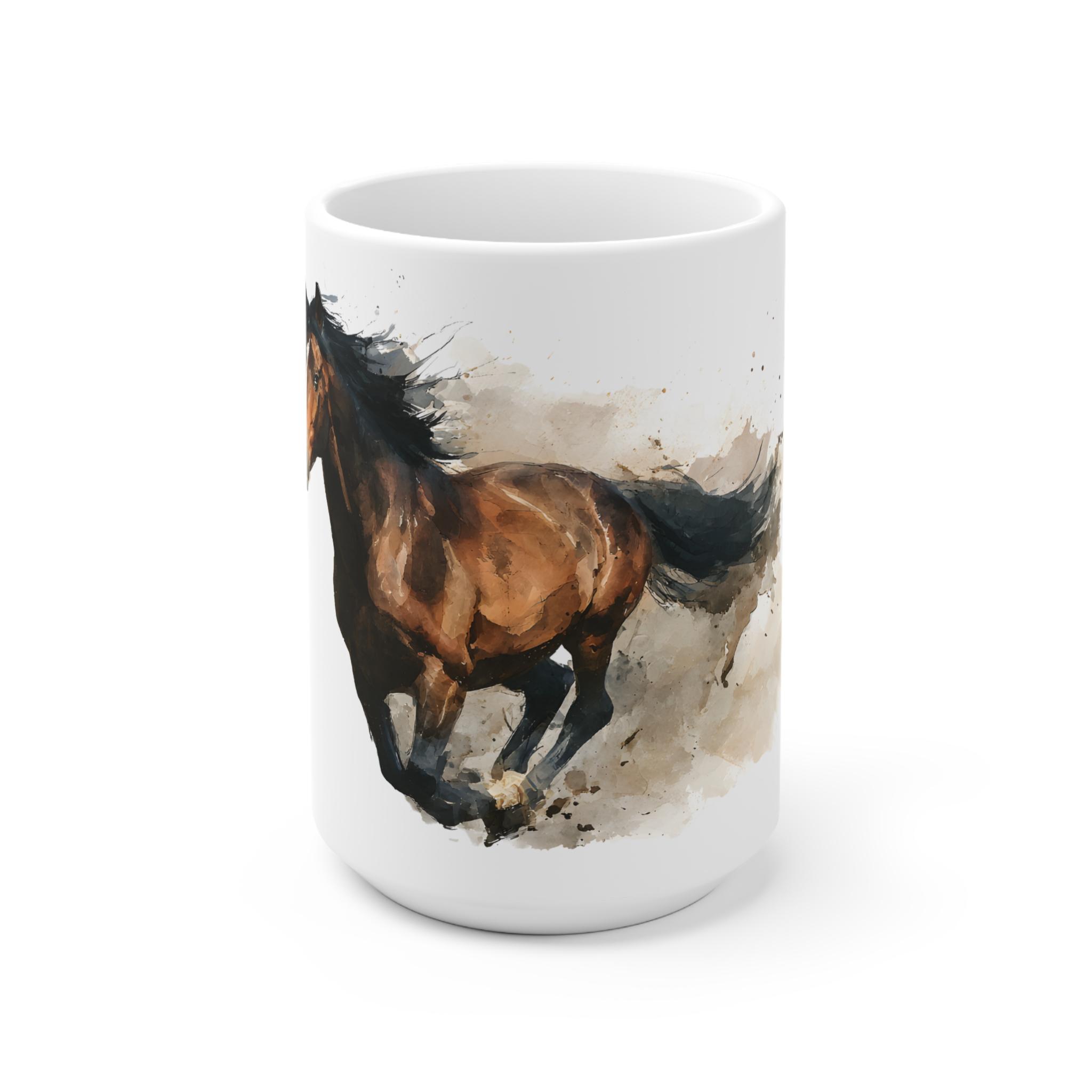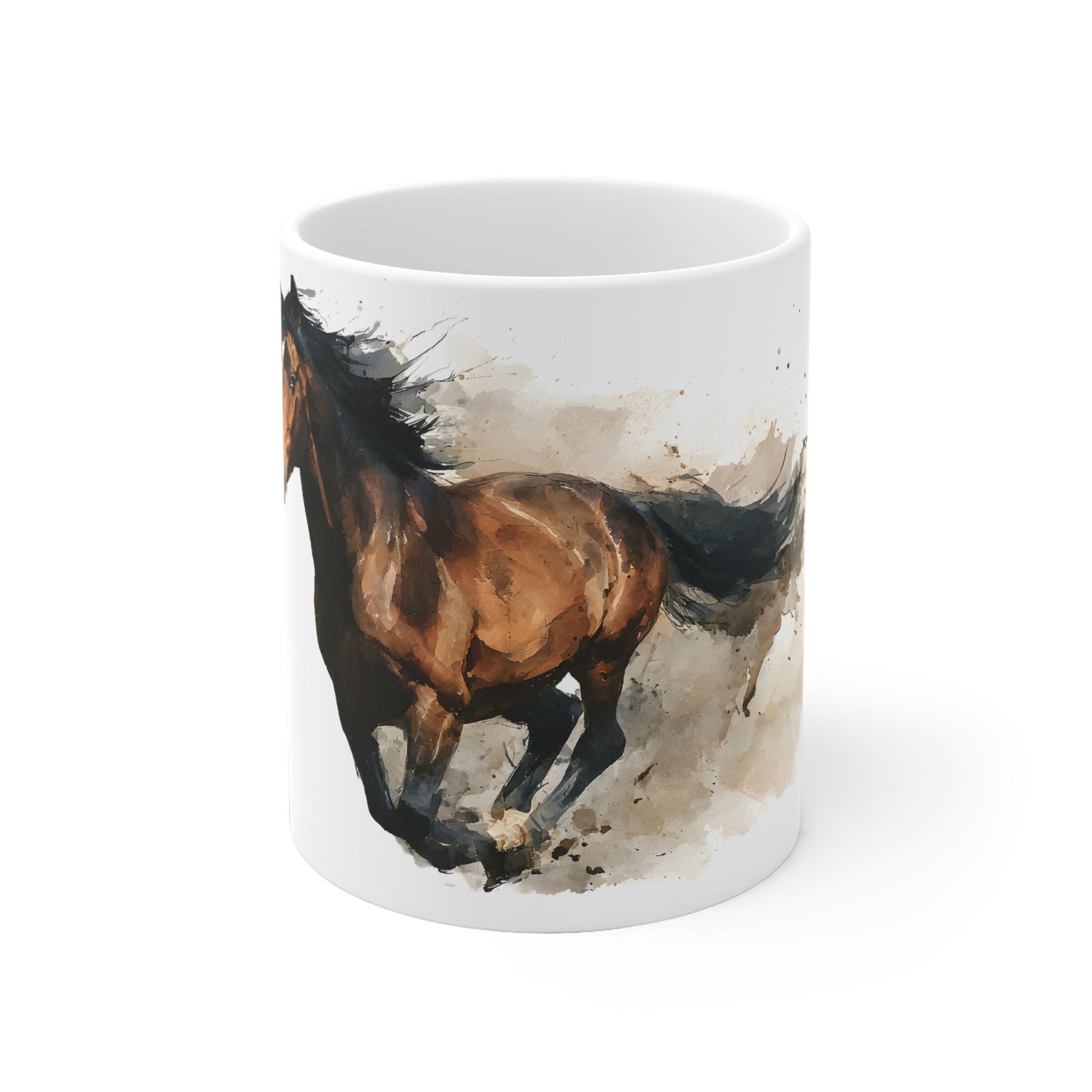 Die Aquarell Tasse mit galoppierendem Pferd steht für Freiheit und Eleganz. Aus hochwertiger Keramik, verfügbar in 11 oz und 15 oz, ist sie ein stilvoller Begleiter für jeden Pferdeliebhaber und sorgt für besondere Genussmomente.