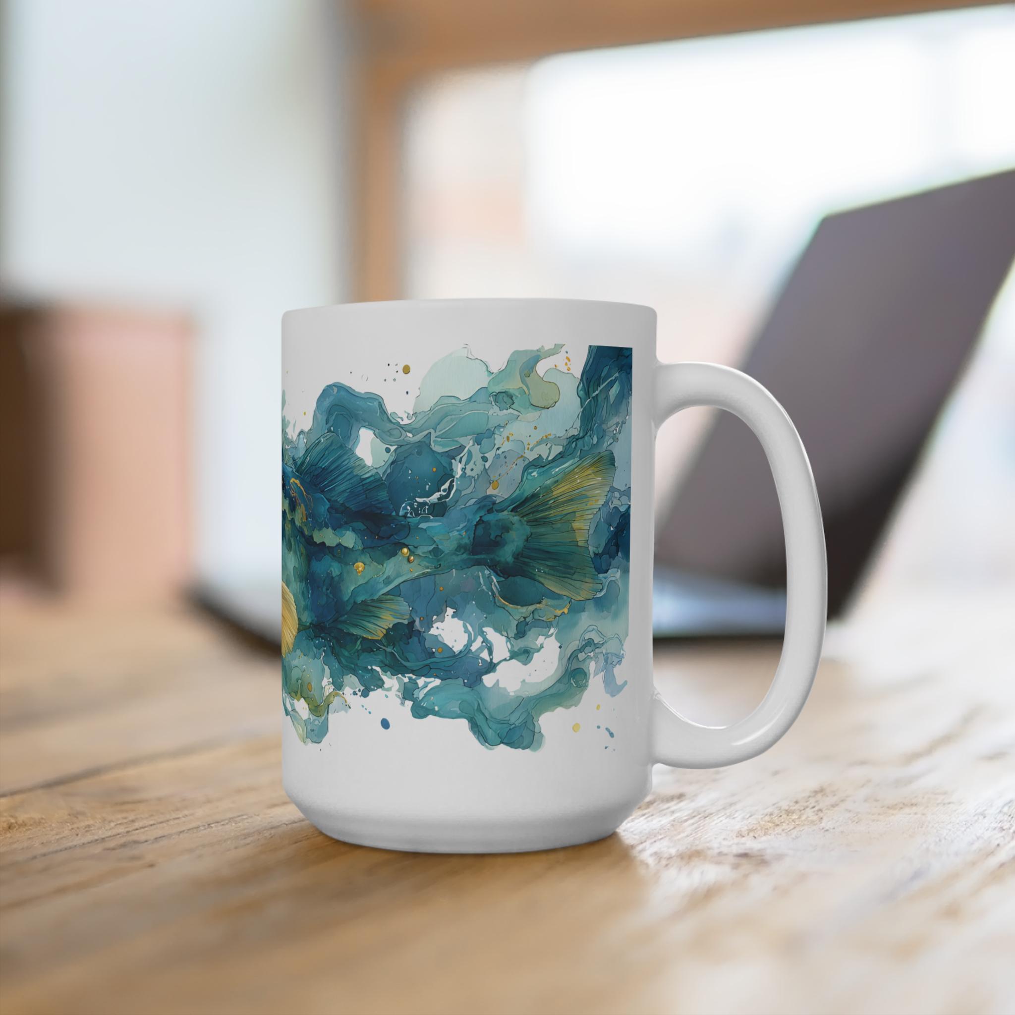 Die Dorsch Aquarell Tasse von Shotspace vereint maritimes Design mit Funktionalität und ist ideal für Kaffeeliebhaber. Erhältlich in zwei Größen (11 oz und 15 oz), bringt sie einen Hauch von Meer in Ihren Alltag. Genießen Sie Ihre Getränke stilvoll für nur 18,00 bis 20,00 Euro.