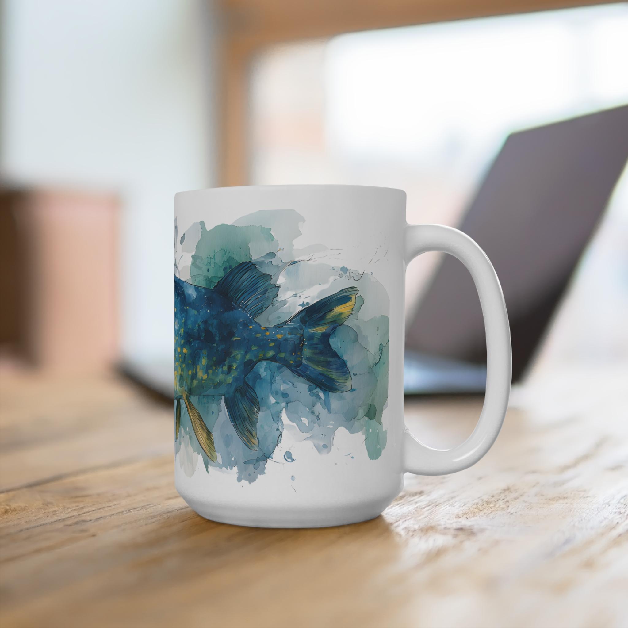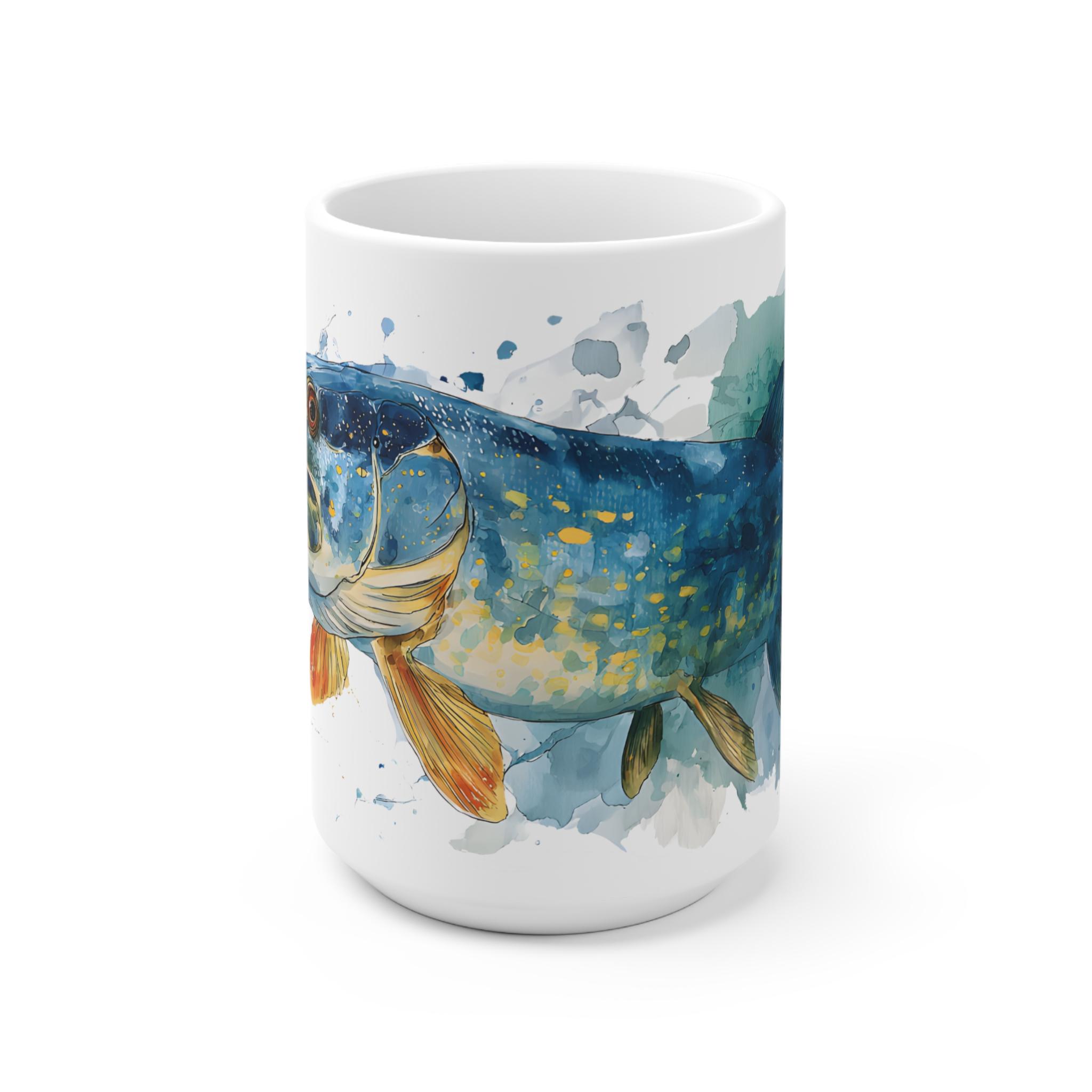 Hecht Aquarell Tasse – Stilvolles Fischmotiv, Geschenkidee für Angler