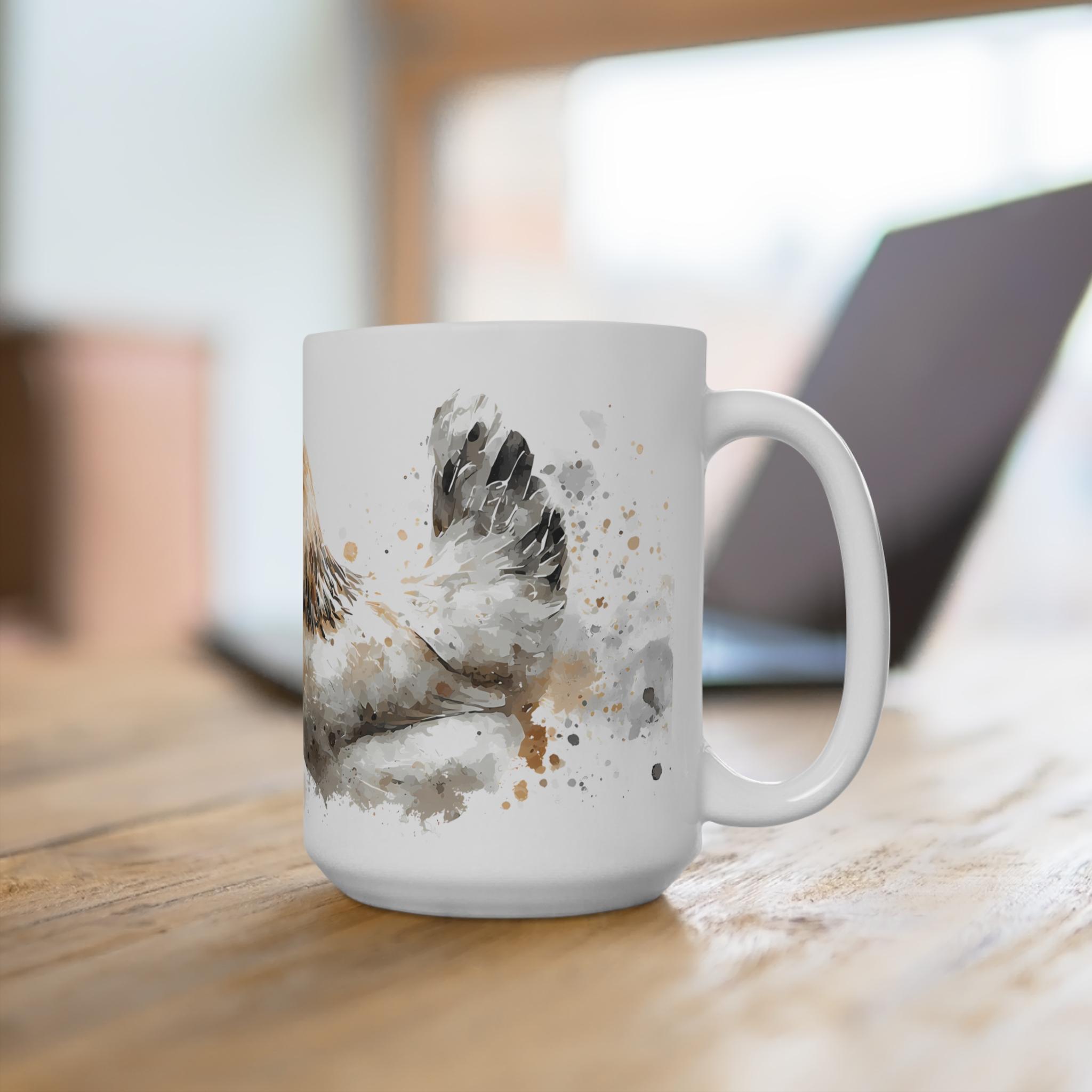 Die Huhn Aquarell Tasse präsentiert ein elegantes Bauernhof Huhn in moderner Aquarellkunst. Verfügbar in 11 oz und 15 oz, ist diese Tasse ideal für Tierliebhaber und Kunstbegeisterte. Preislich zwischen 18,00 € und 20,00 €, bietet sie eine stilvolle Ergänzung für jede Küche.
