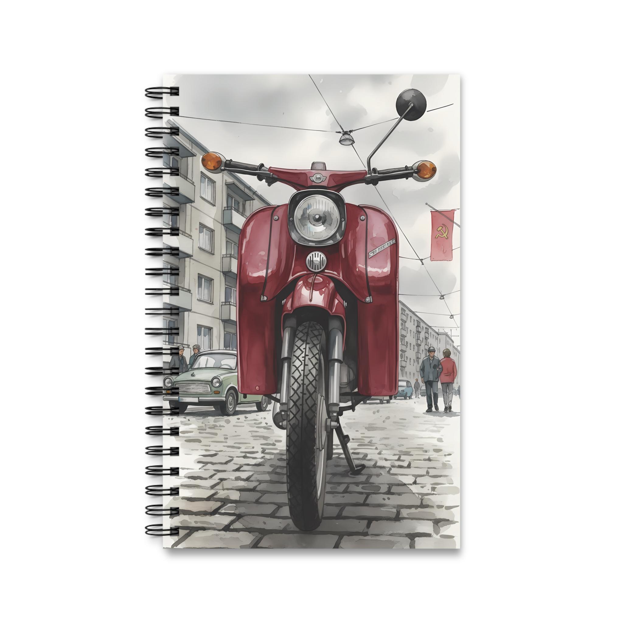 Entdecken Sie das Ostalgie Moped Notizbuch – eine authentische Hommage an die legendäre rote DDR Schwalbe KR51, die nostalgische Erinnerungen weckt und gleichzeitig Funktionalität bietet. Dieses Notizbuch ist perfekt für alle, die die Geschichte der DDR schätzen und ihre Gedanken, Ideen oder Erinnerungen festhalten möchten.