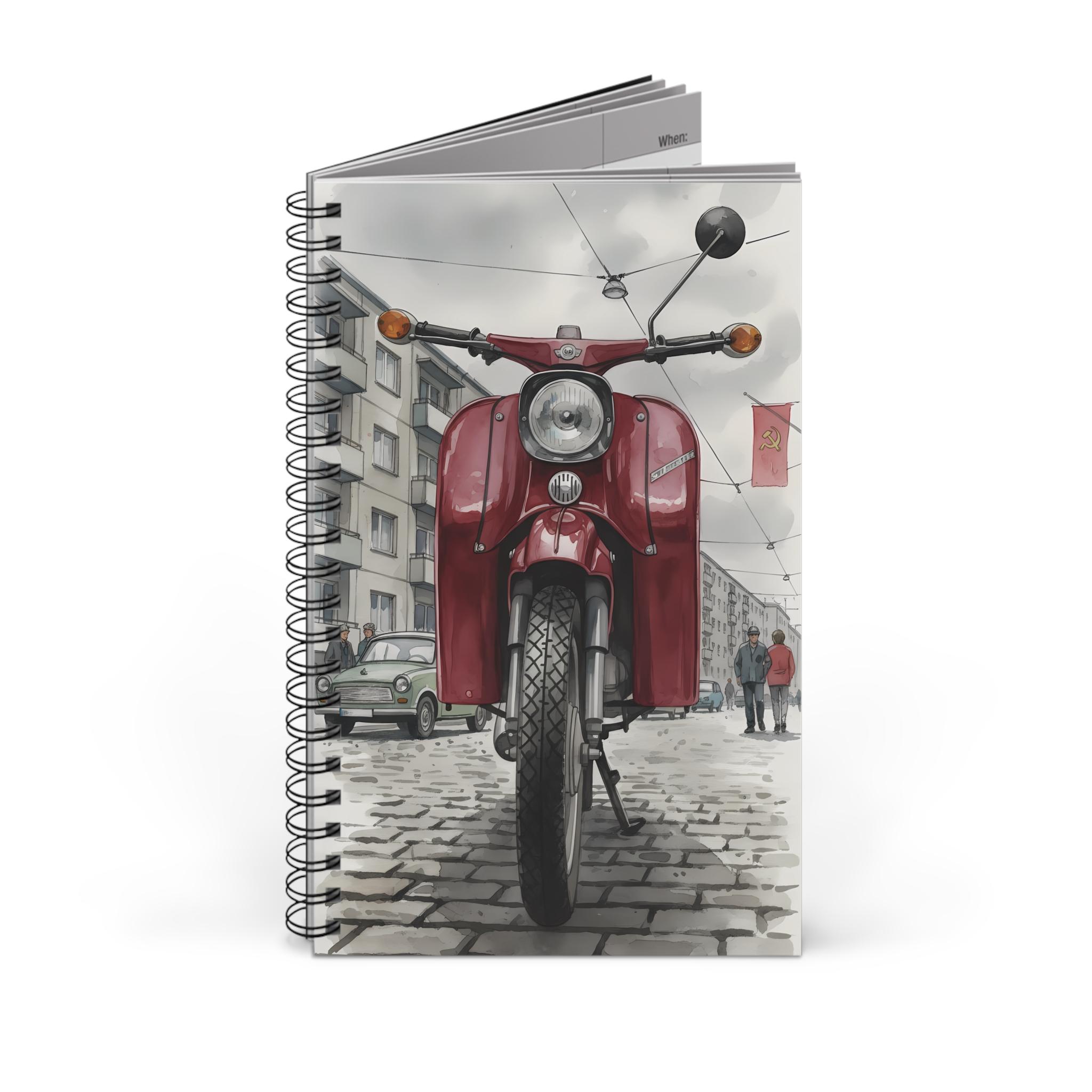 Ostalgie Moped Notizbuch – Rote DDR Schwalbe KR51 im Stadtbild