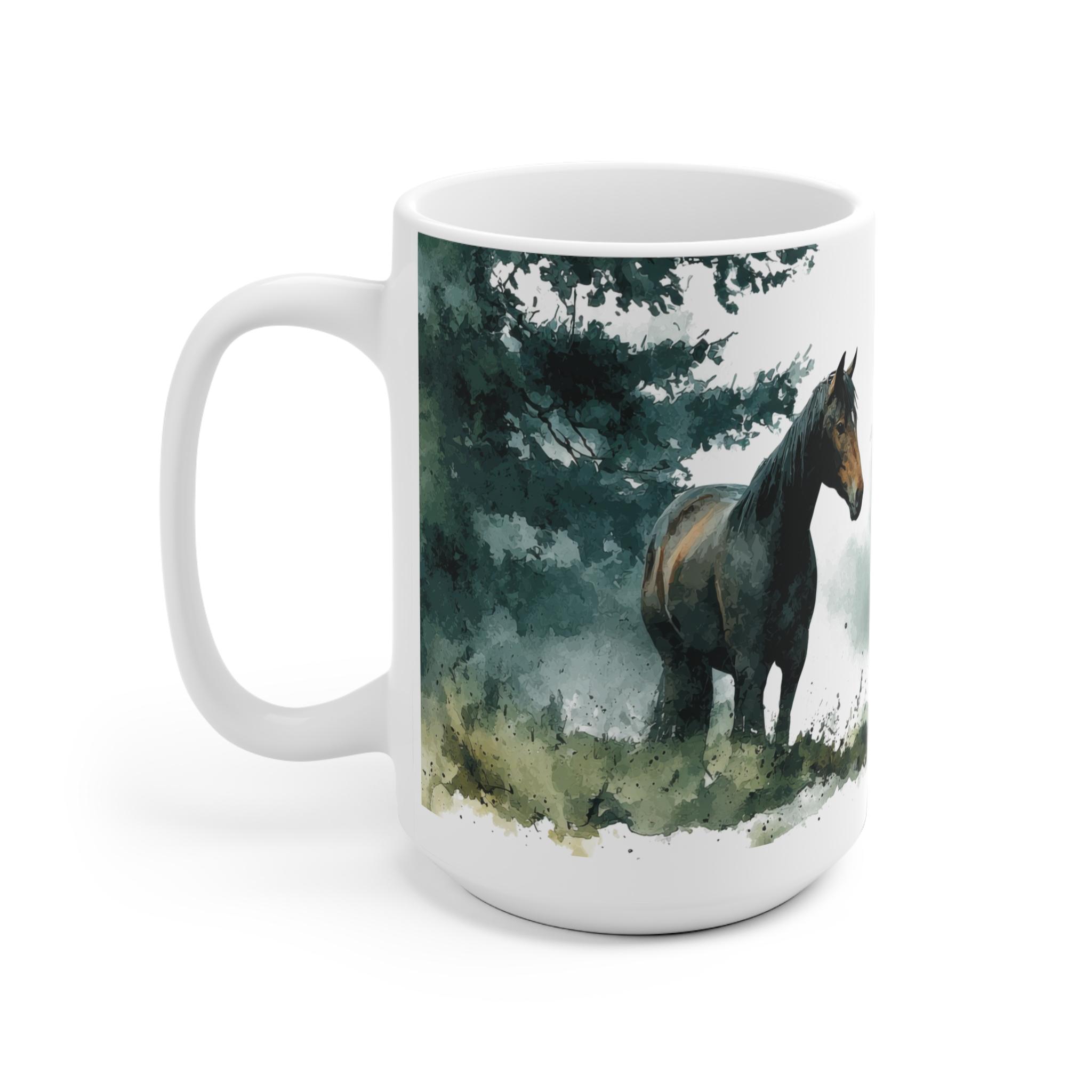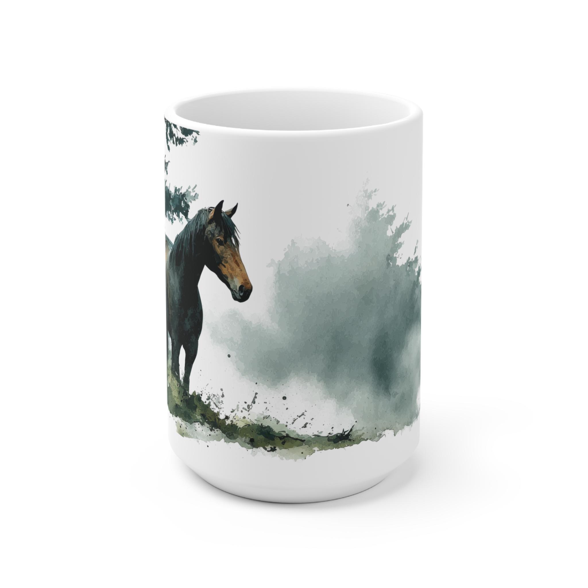 Genießen Sie Ihren Kaffee oder Tee mit dieser stilvollen Aquarell Pferde Tasse im Waldmotiv. Die Tasse bietet entspannende Waldatmosphäre für jeden Tag und ist in den Größen 11 oz und 15 oz erhältlich. Ideal für Pferdeliebhaber.