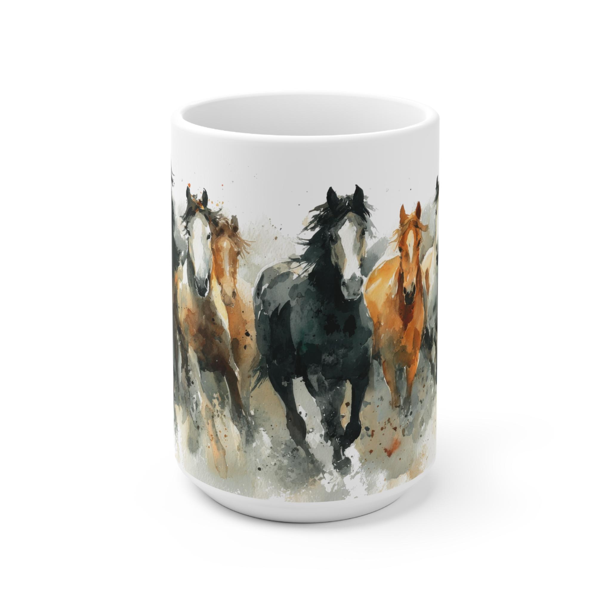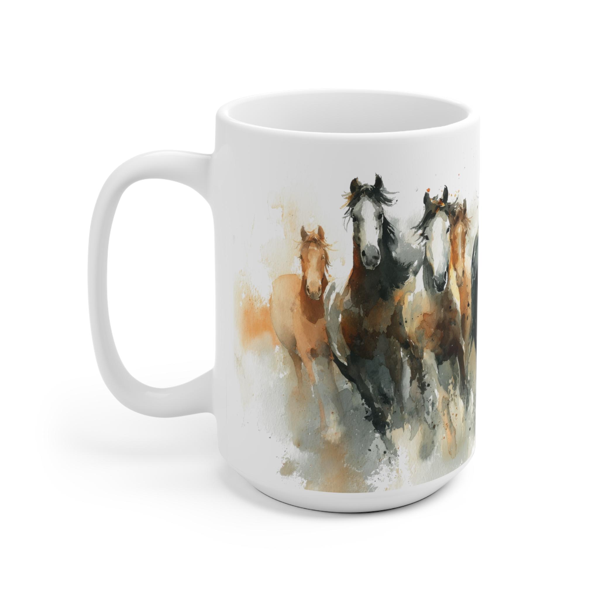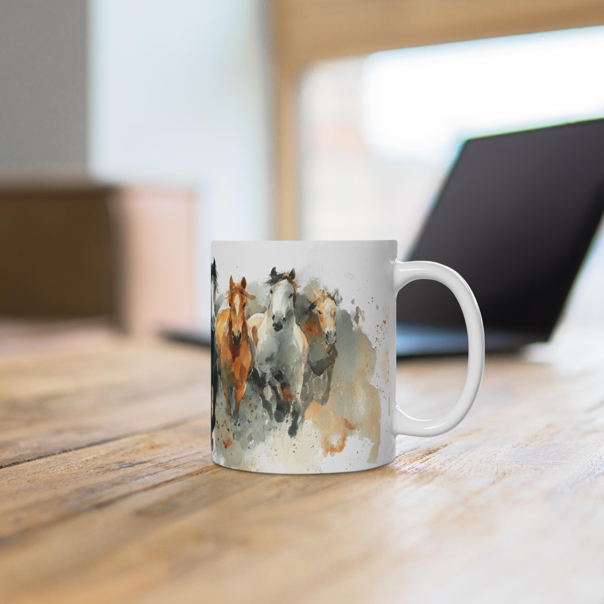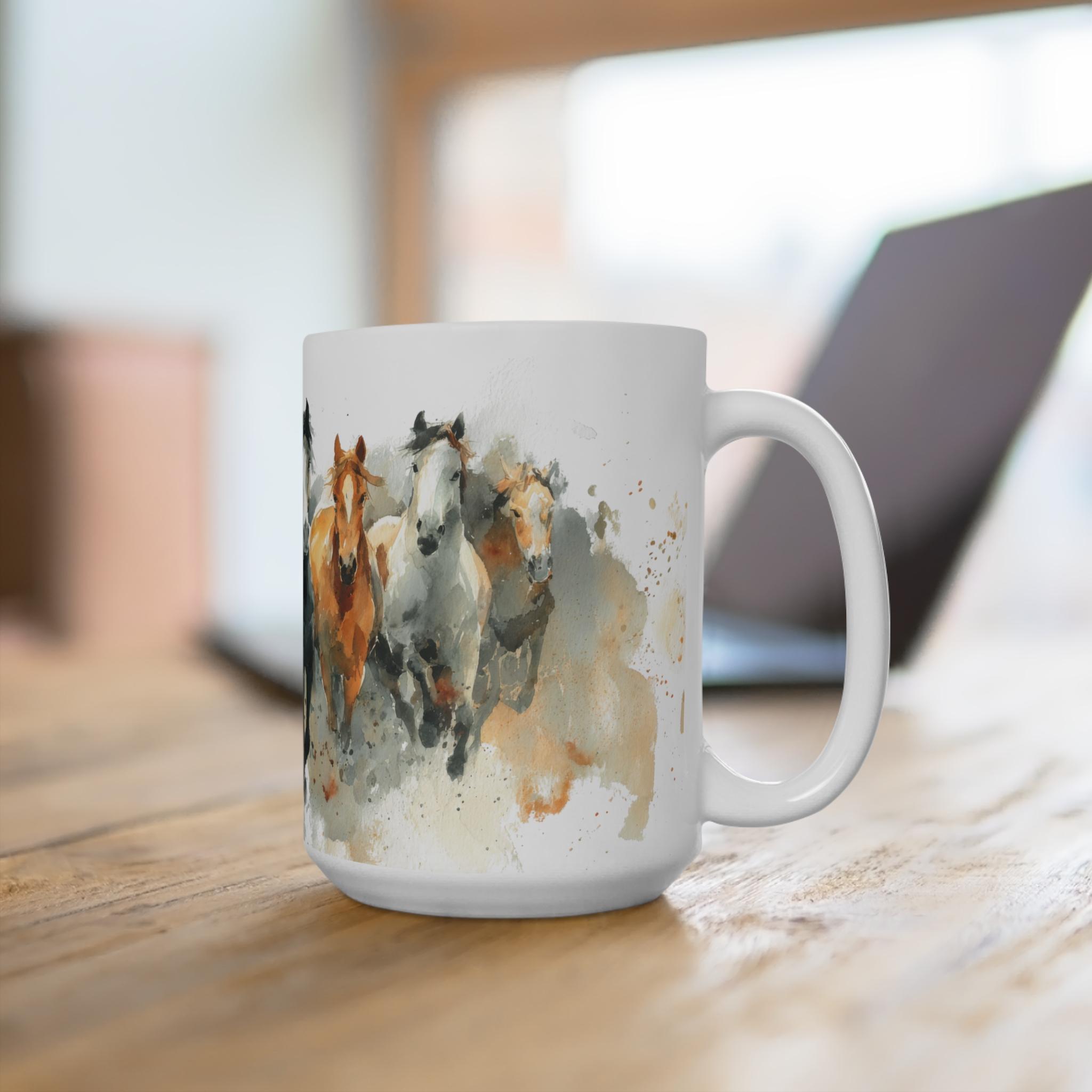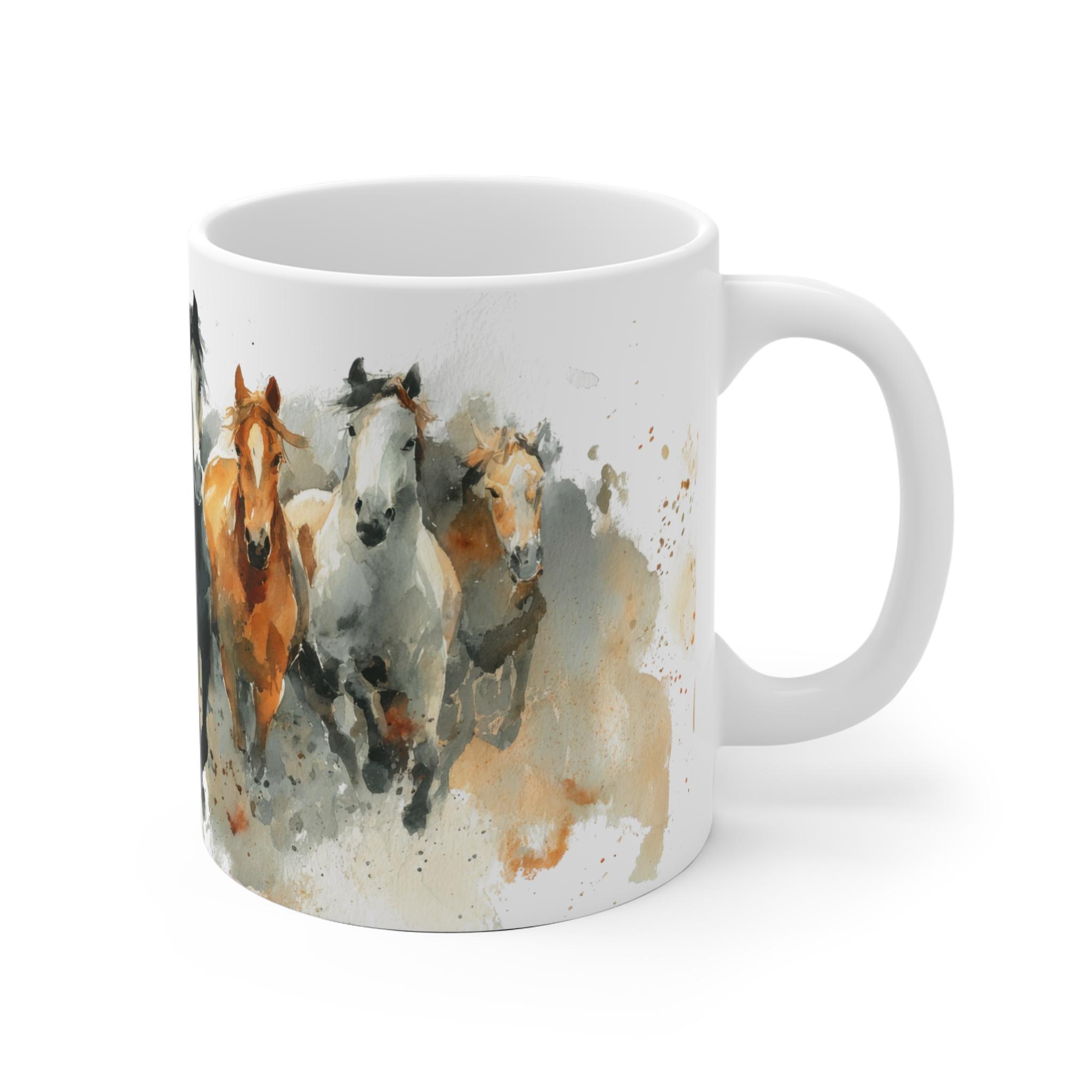 Aquarell Pferde Tasse – Kunstvolles Geschenk für Reitfans, 11/15 oz