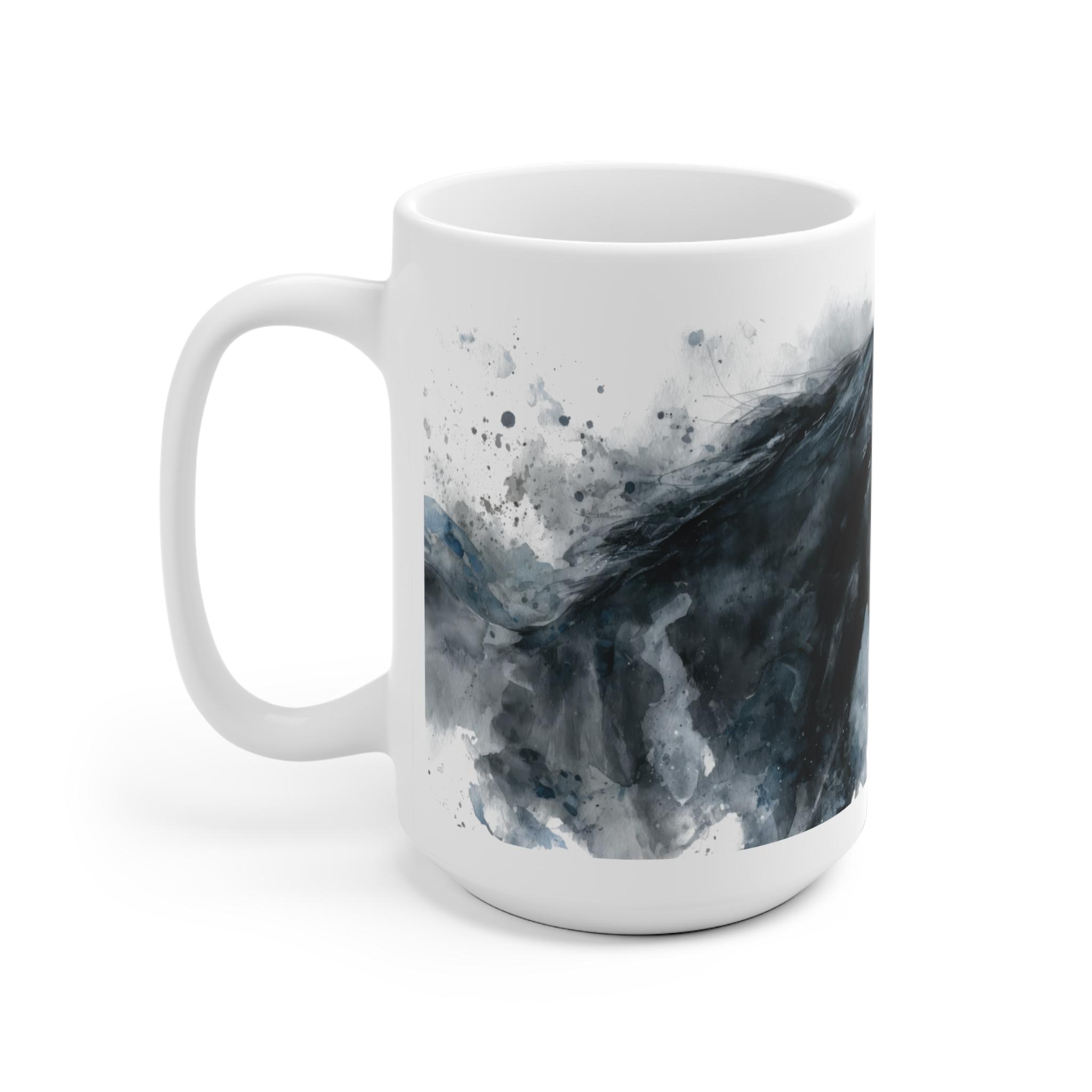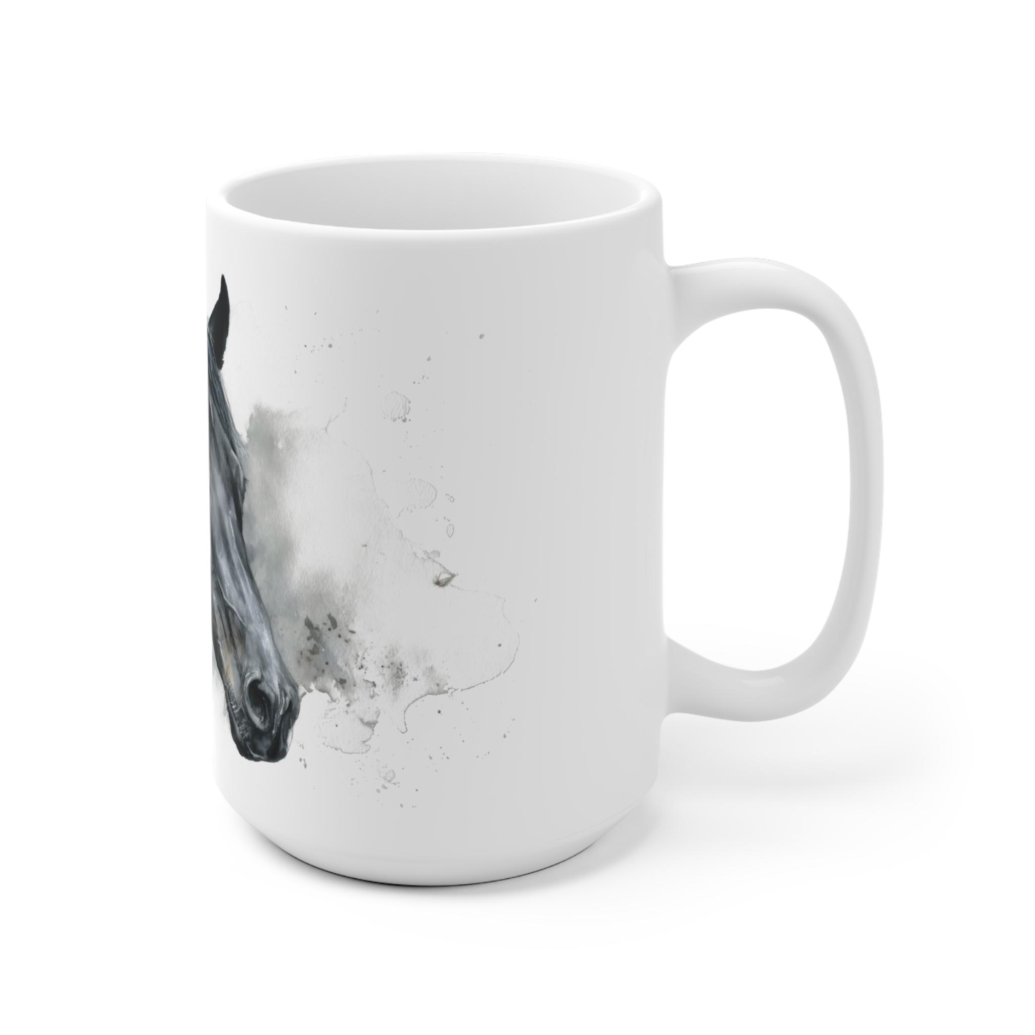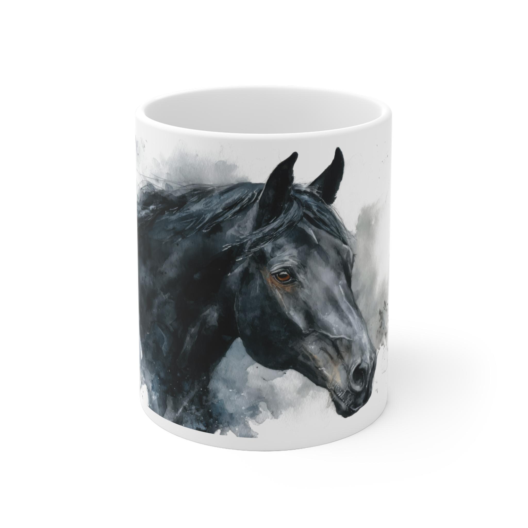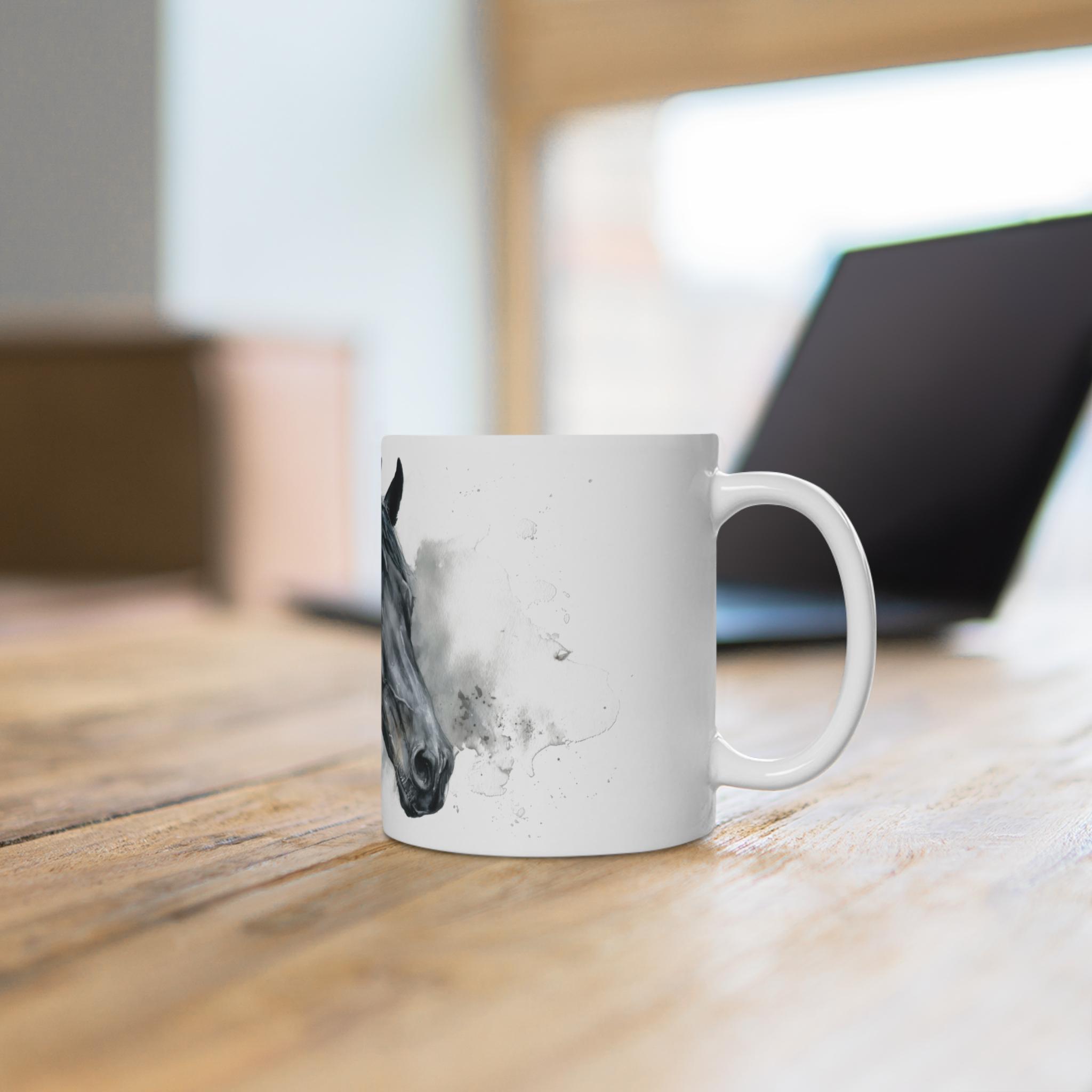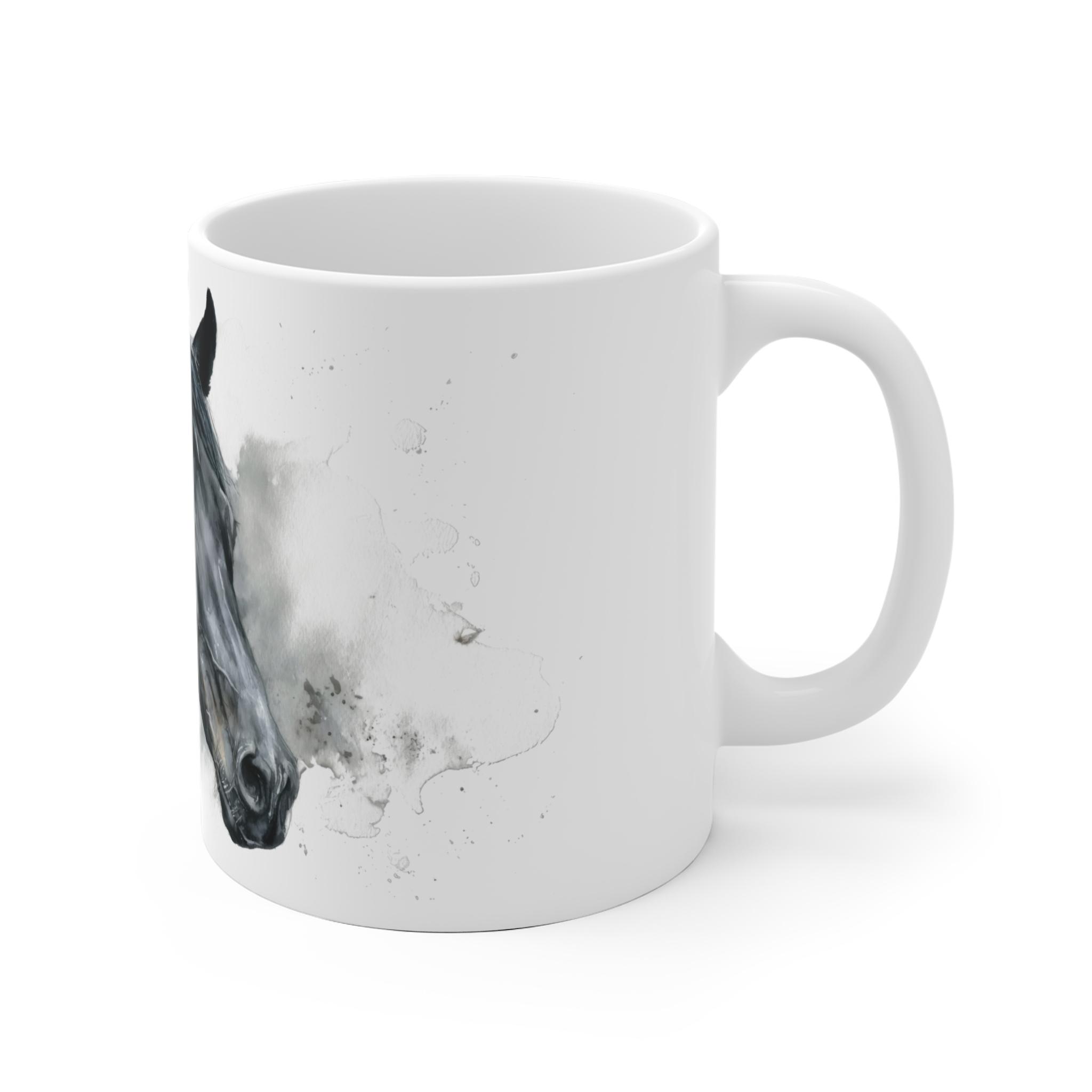 Diese stilvolle Tasse zeigt ein elegantes Aquarell-Pferdeportrait eines kraftvollen schwarzen Pferdes. In hochwertiger Ausführung erhältlich in 11 oz oder 15 oz, ist sie ein besonderer Blickfang für Pferdeliebhaber.