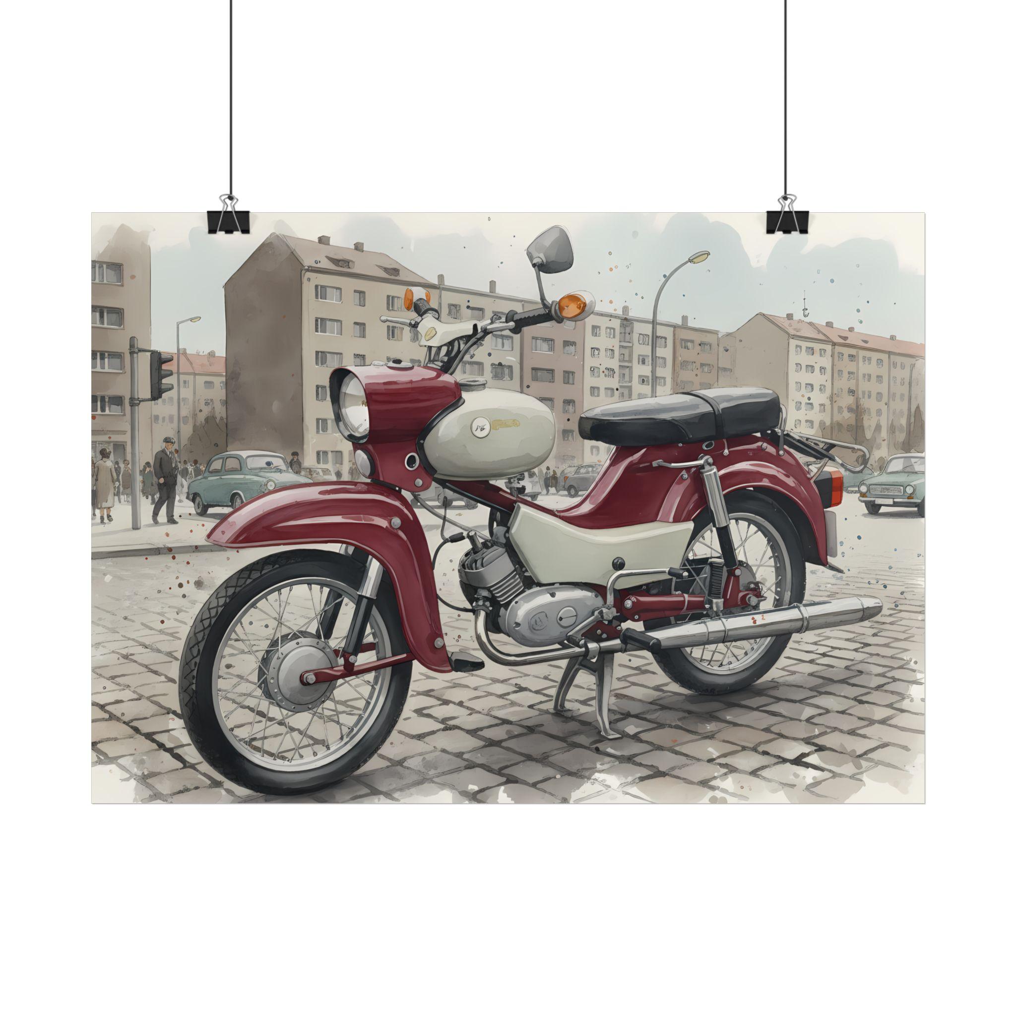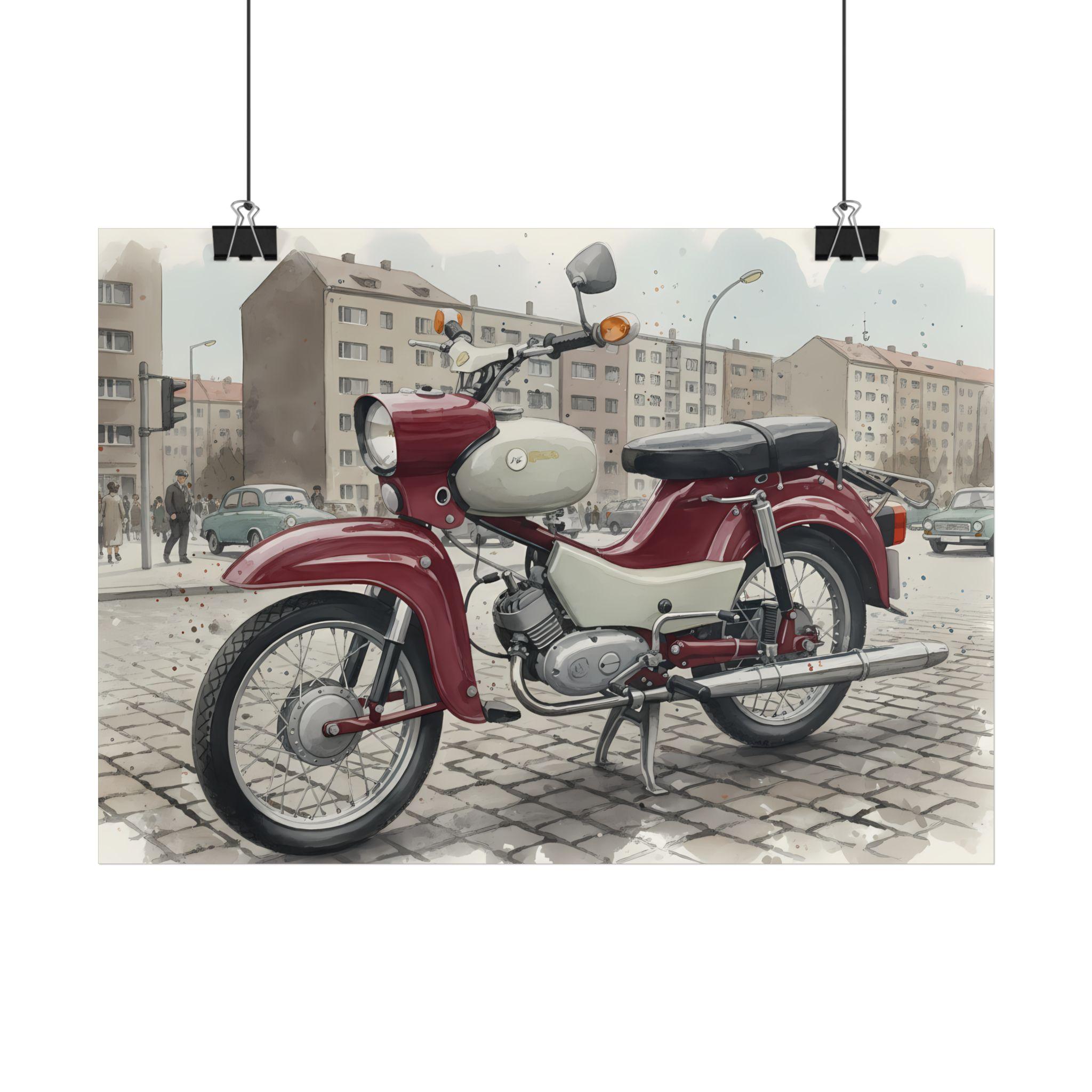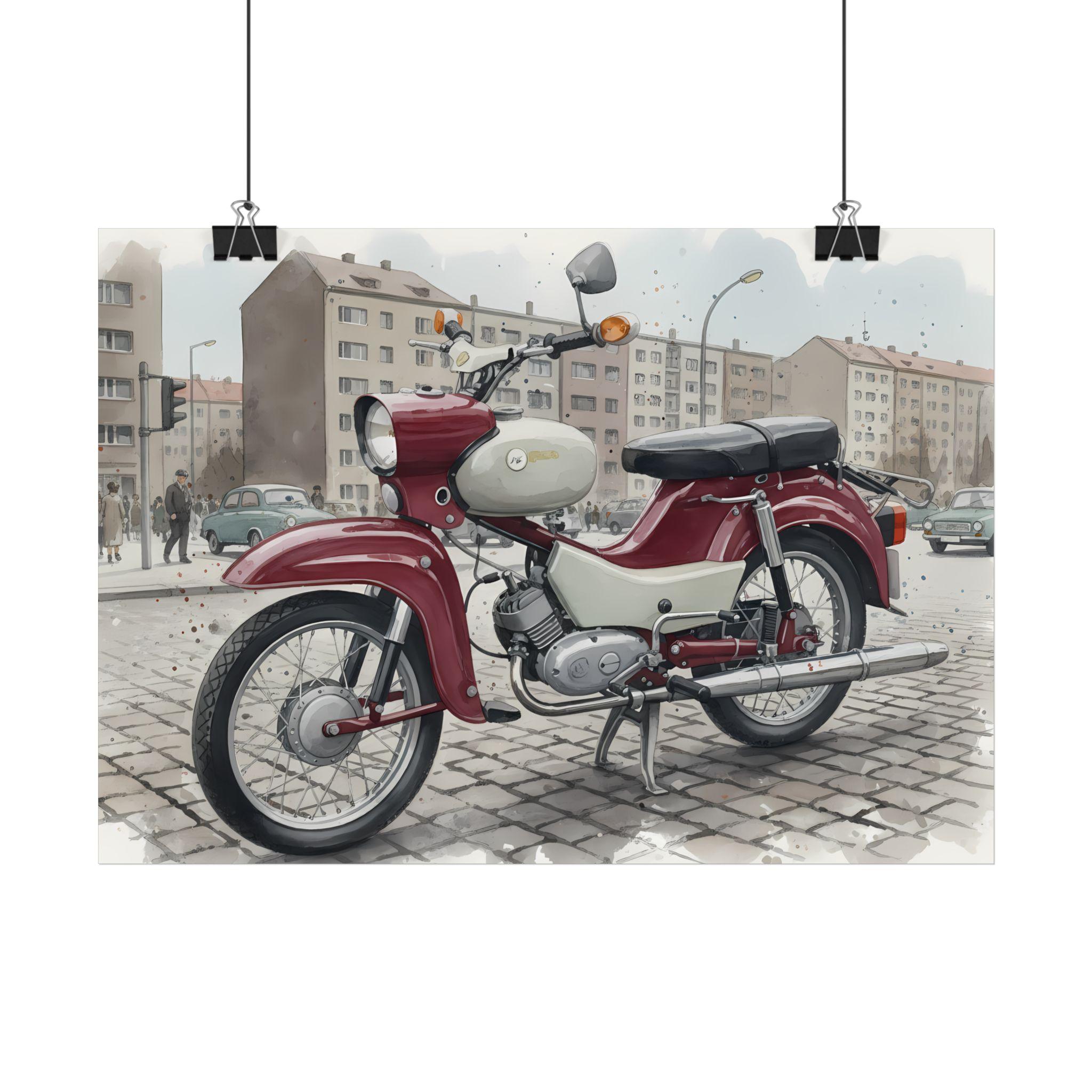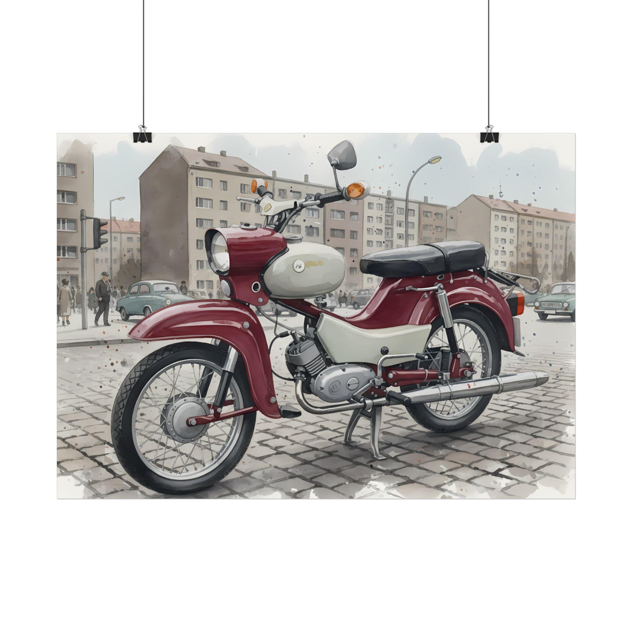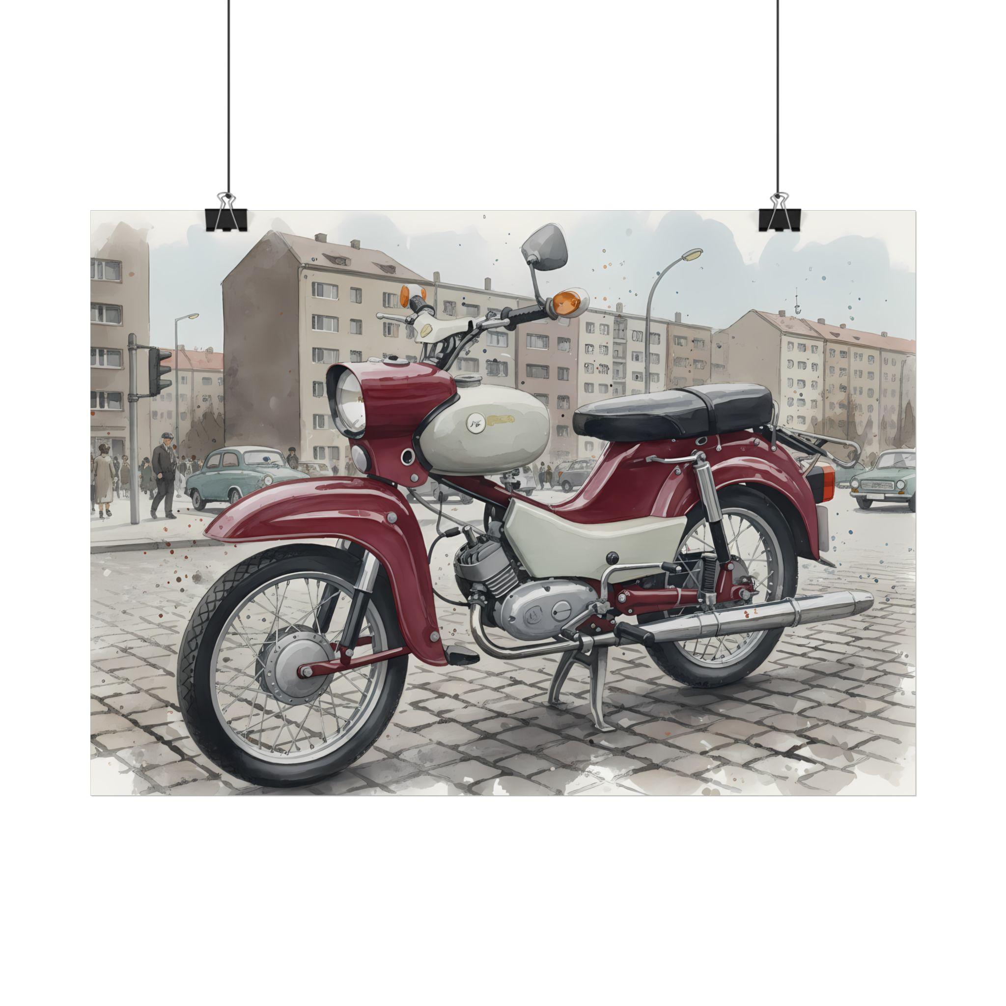 Simson Star SR4 Poster – DDR Kult-Moped in klassischer Stadtszene