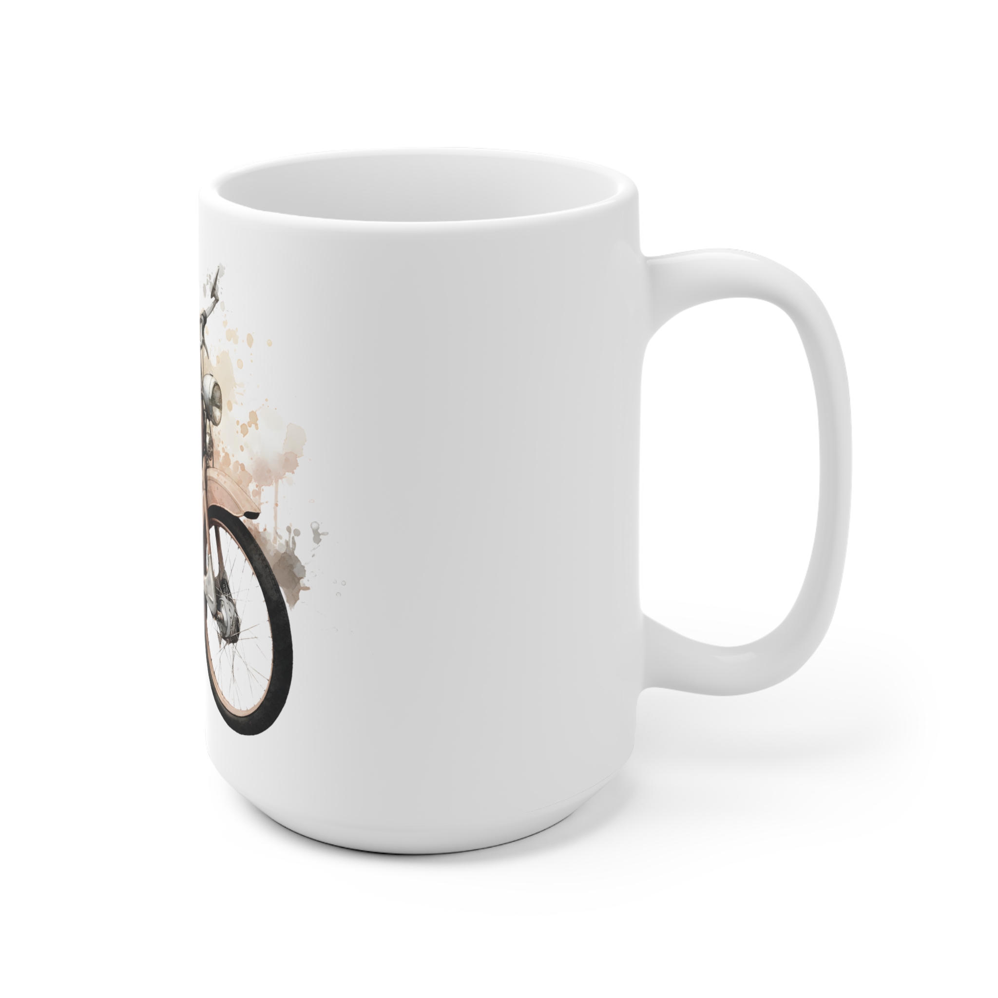 Die Vintage DDR SR2 Moped Tasse präsentiert klassische ostdeutsche Motorradkunst im Retro-Aquarellstil. Erhältlich in 11 oz und 15 oz, ist sie das perfekte Geschenk für Liebhaber historischer Fahrzeuge und stilvoller Kaffeeaccessoires.
