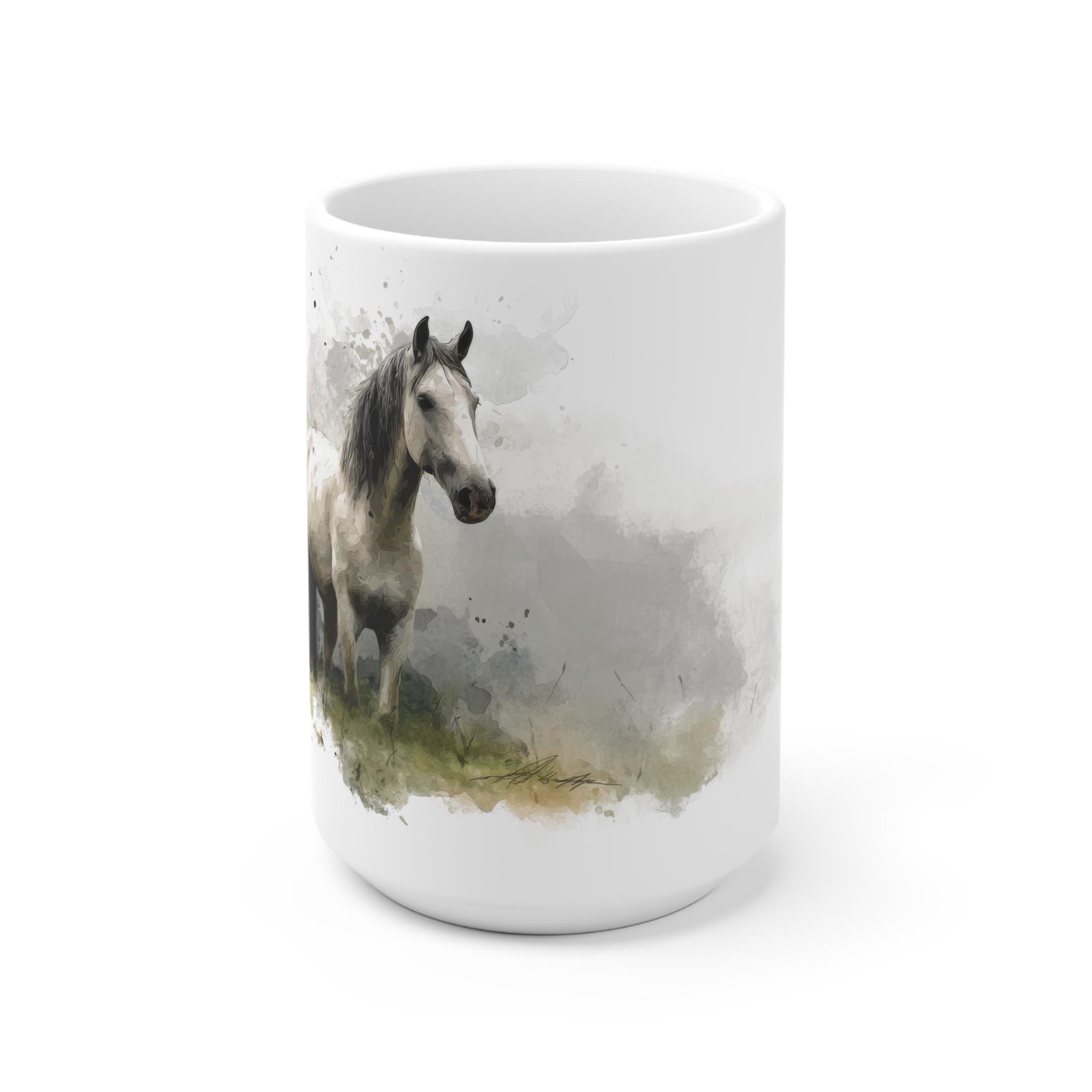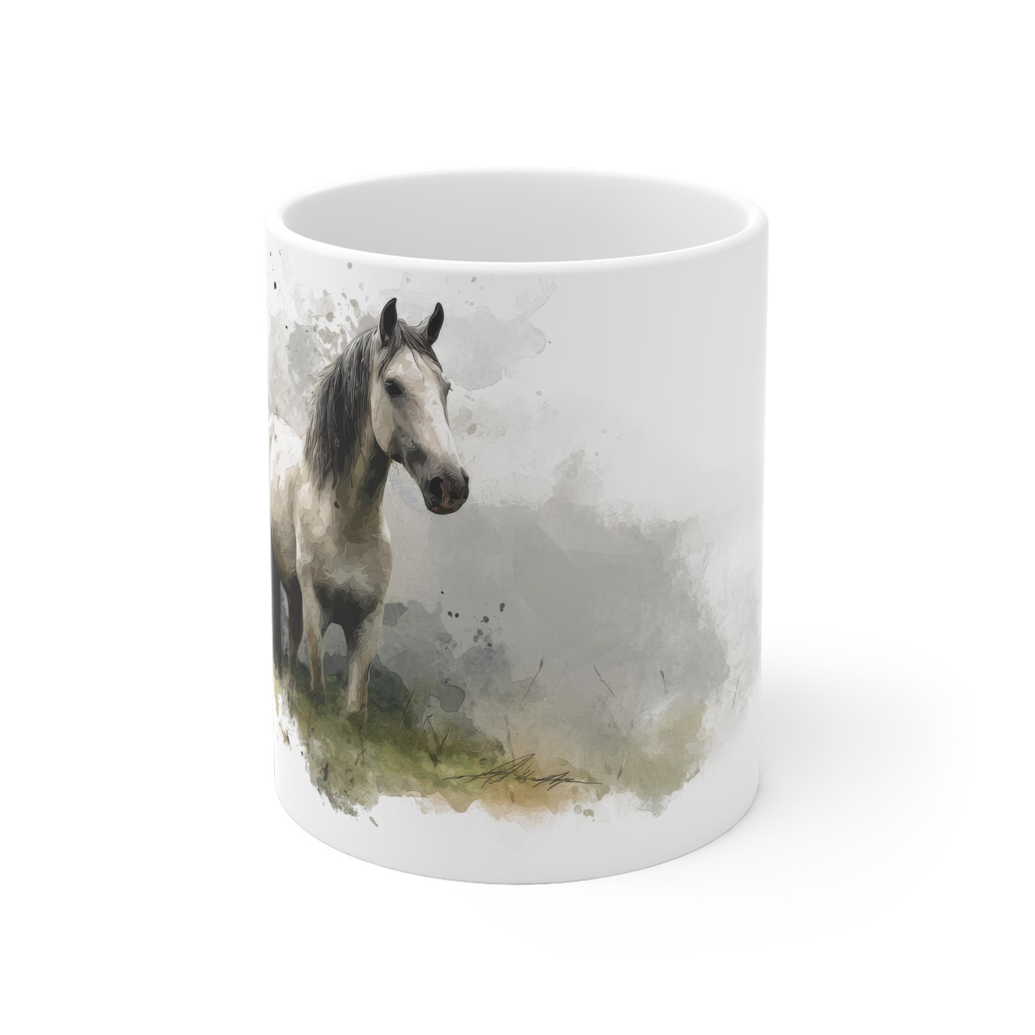 Aquarell Tasse Weißes Pferd – Elegantes Geschenk für Naturliebhaber