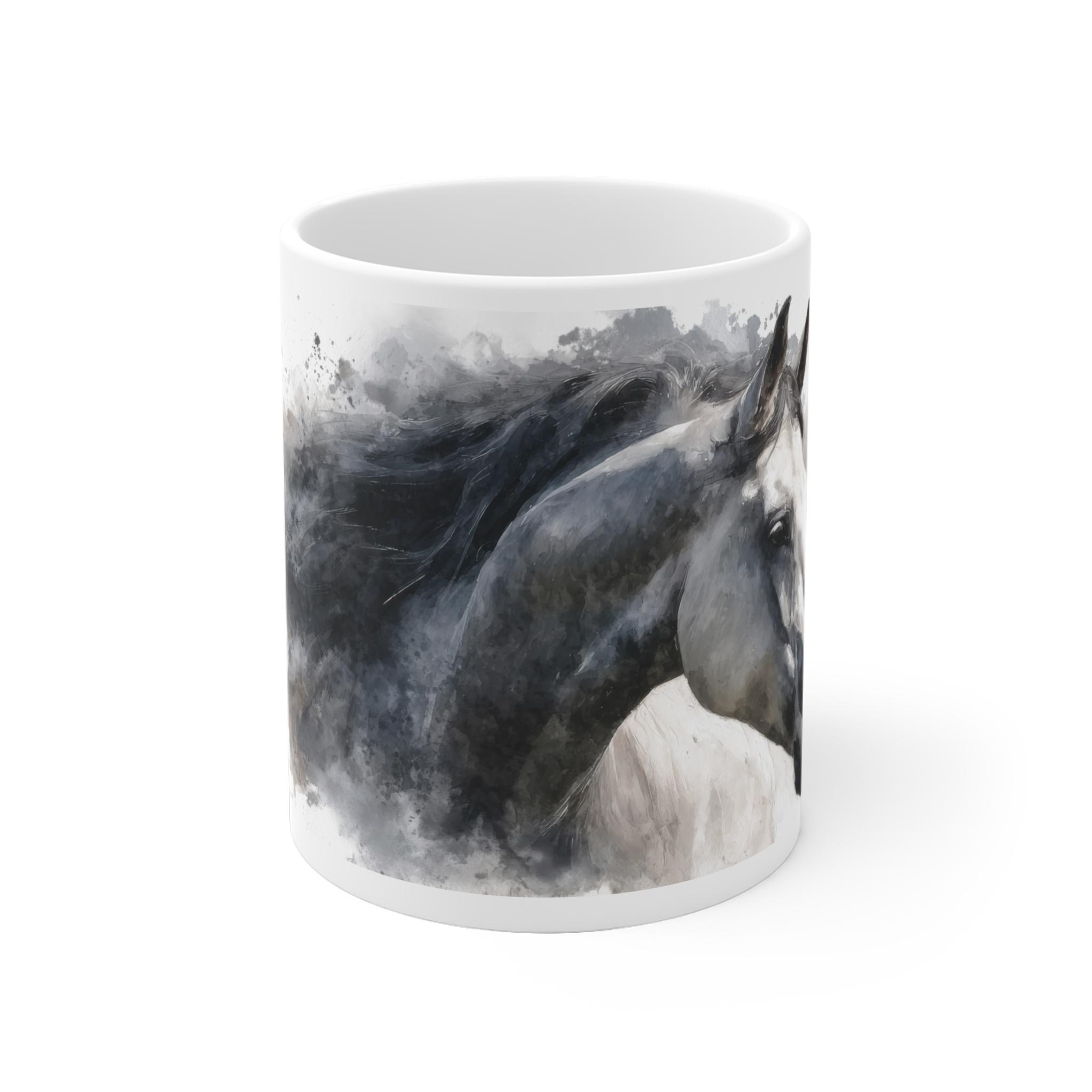 Pferde Tasse Weiß – Künstlerisches Aquarell-Portrait, Geschenkidee für Reiter, 11/15 oz