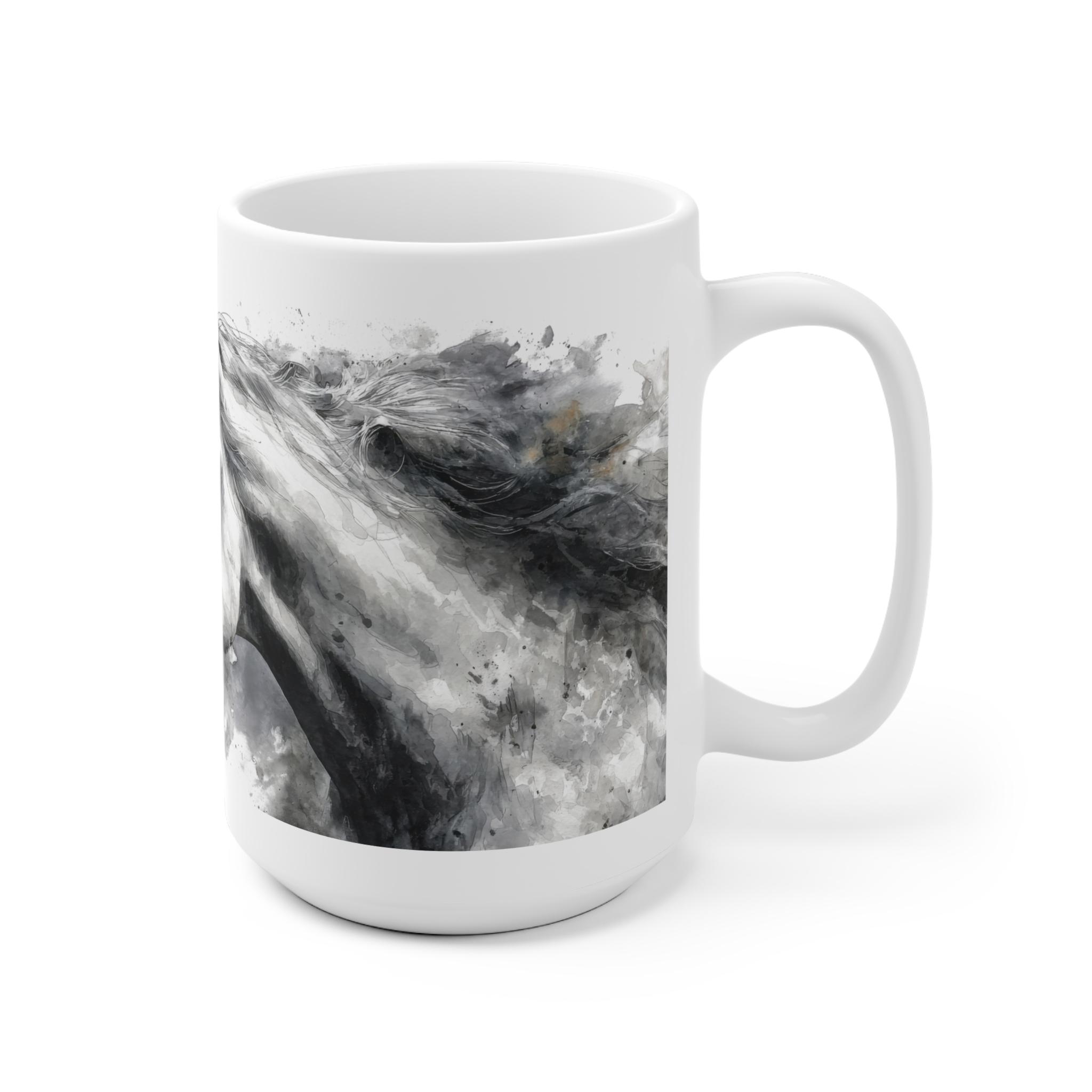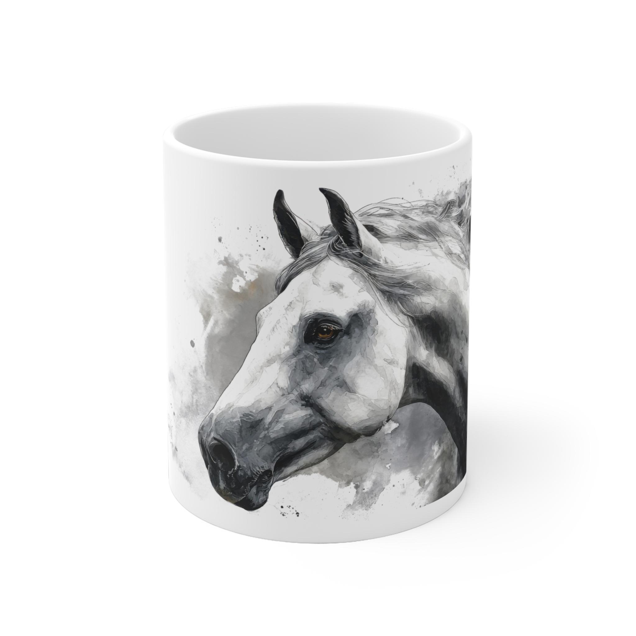 Aquarell Pferde Tasse – Monochrom Eleganz für Pferdeliebhaber, 11/15 oz Geschenkidee