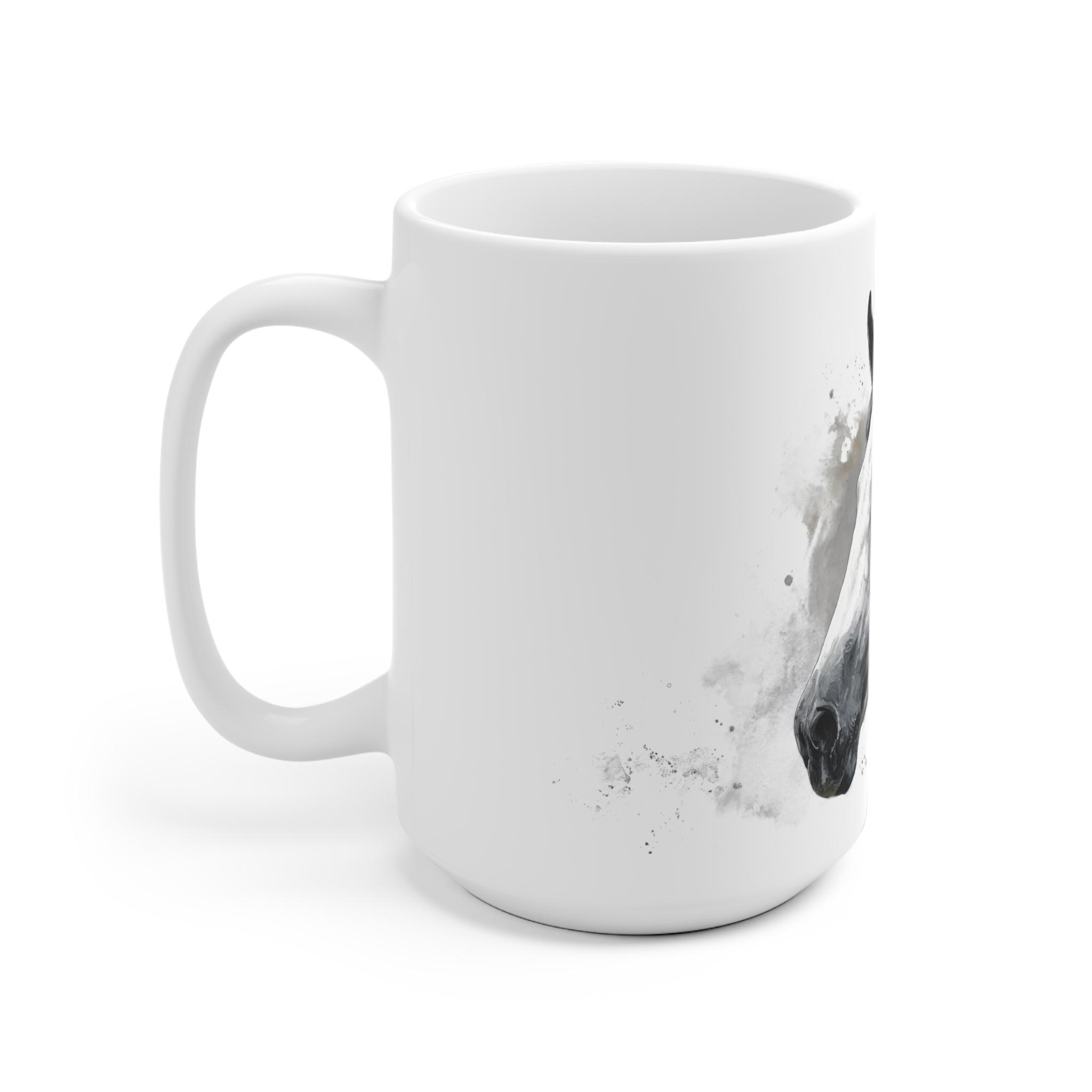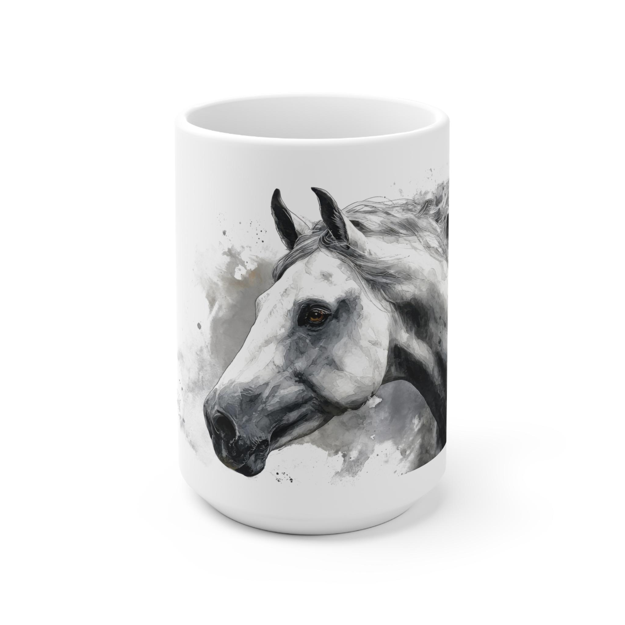 Edle Tasse mit elegantem, monochromem Aquarell Pferdeportrait für Pferdefans. Stilvolles Design, erhältlich in 11 oz oder 15 oz. Perfekt für den täglichen Kaffeegenuss oder als besonderes Geschenk.